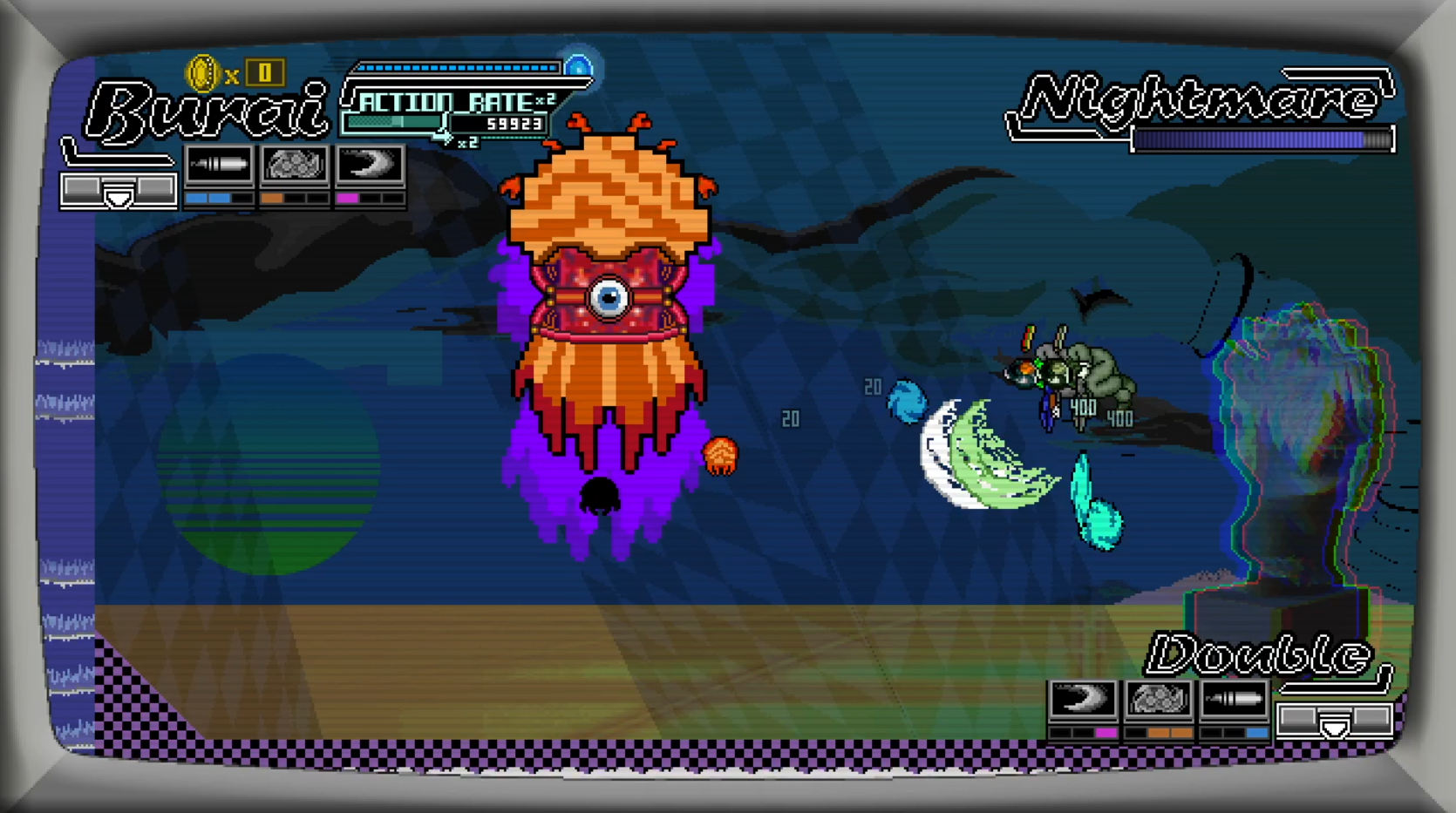 The level of polish for the game feel and aesthetic is really good. The little details added for the start screen, the continue screen counting down faster if you press a button to burai flying off camera after a level (not to mention countless others). All of this really shows a lot of love and care for crafting a great experience.